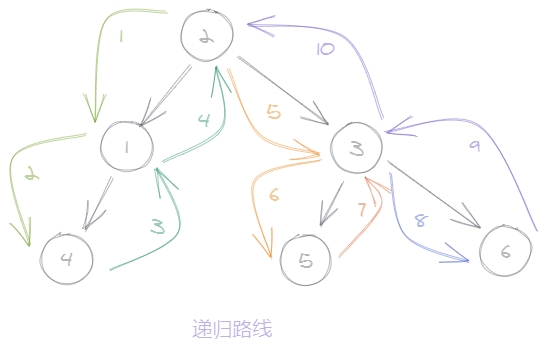 // 因为我们是先遍历左子节点,再遍历右子节点