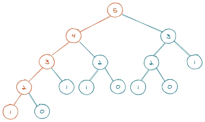 fib函数中,fib都被调用了两次,所以递归树的最大分支数是 2递归树的最大深度是 n