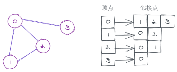 上面的图用邻接表来表示的话: