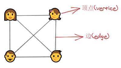 在图中,节点叫做顶点(vertice),表示关系的线叫做边(edge)。